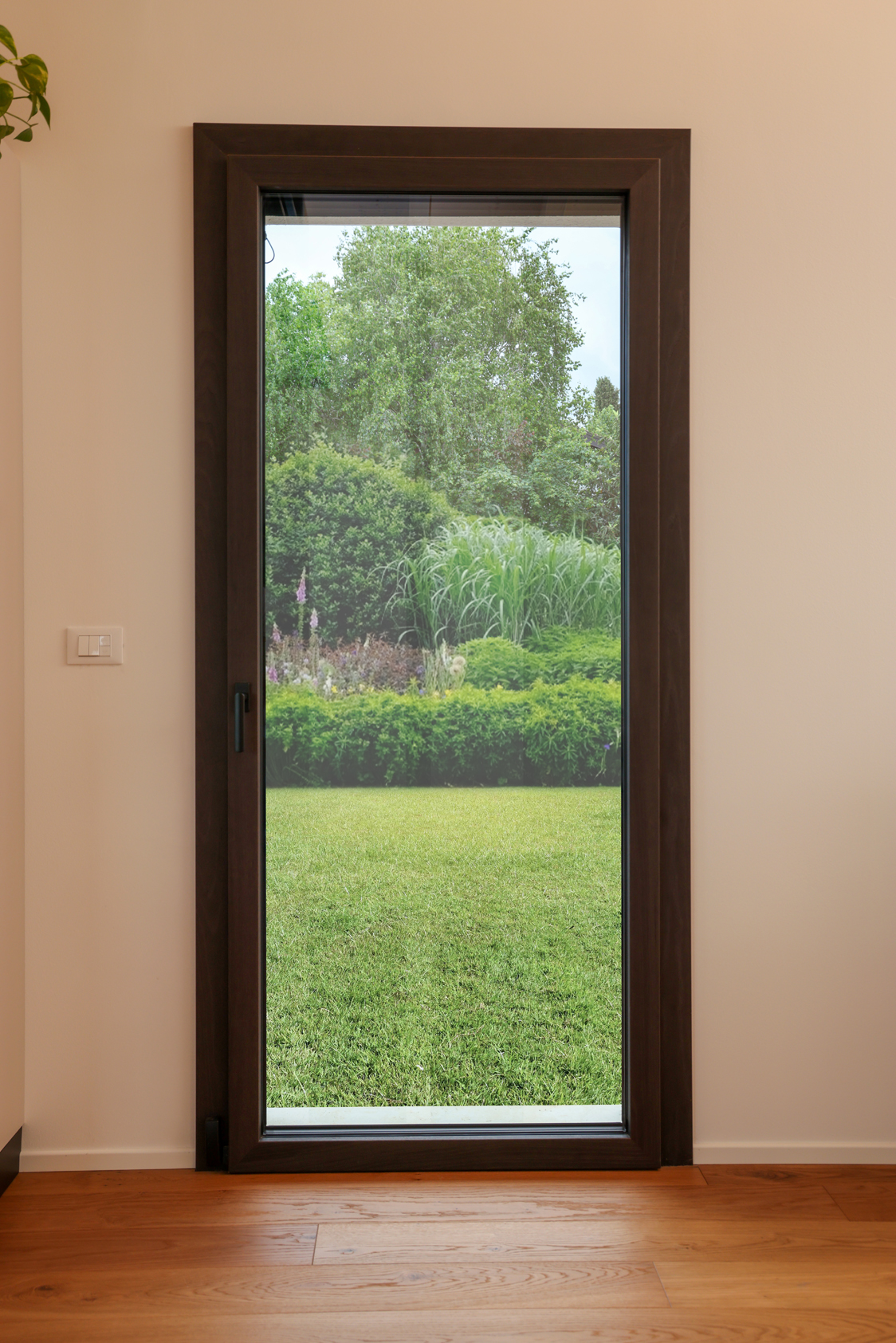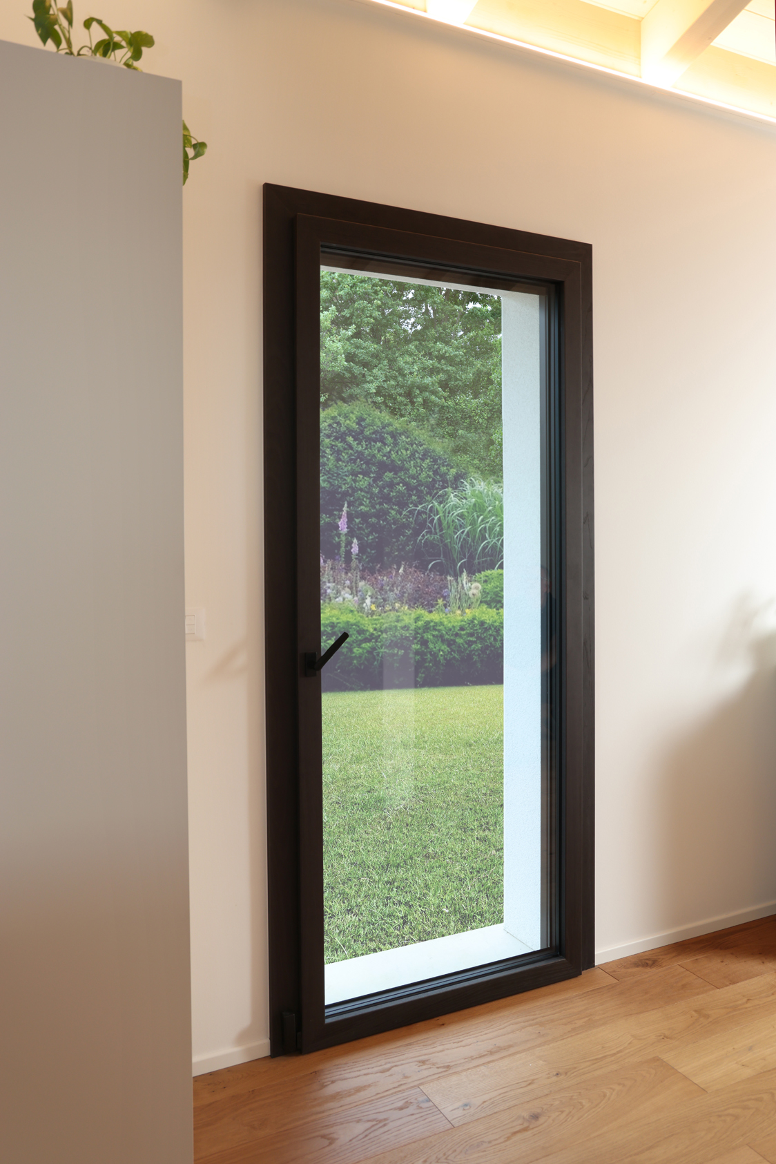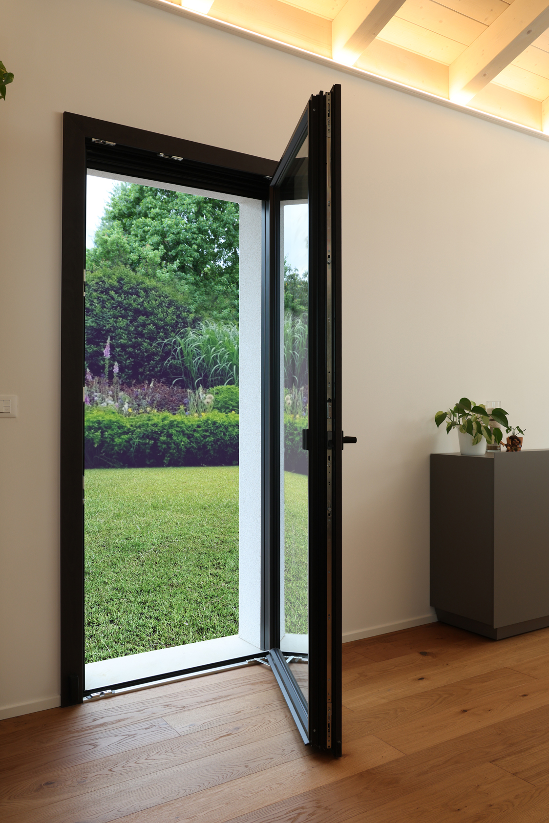 CON VETRO ANTISFONDAMENTO E PELLICOLA PVB 0.78, FERRAMENTA CON INCONTRI ANTI-EFFRAZIONE, PREDISPOSIZIONE ANTI-INTRUSIONE E MANIGLIA CON CHIAVE