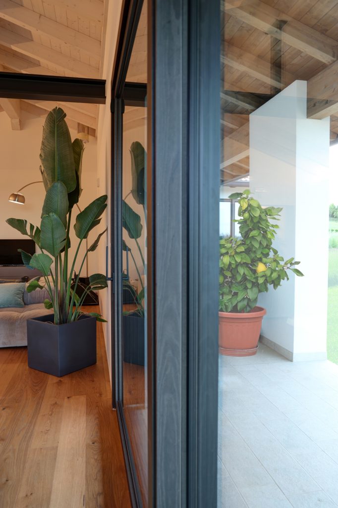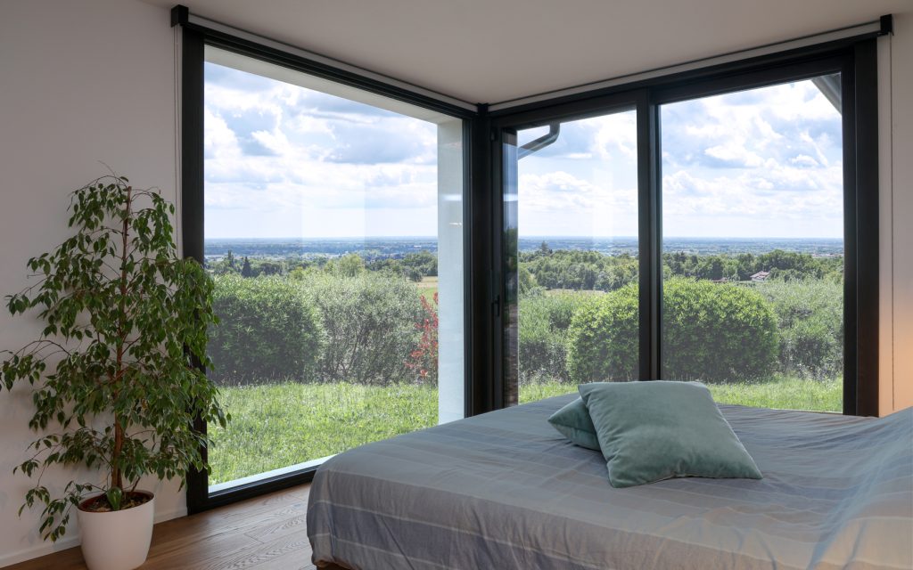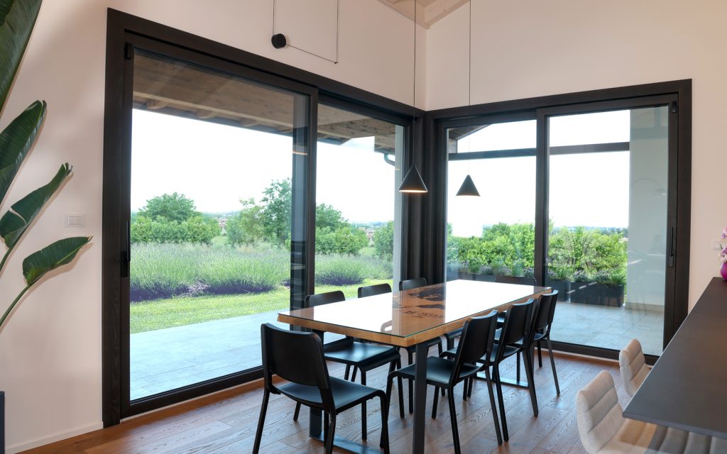 Panorama Slim è la più piccola anta disponibile per alzante scorrevole in misto alluminio/legno dalle stesse dimensioni dei serramenti a battente per conferire un’estetica unica alla casa e l’ingresso di maggiore luce naturale.